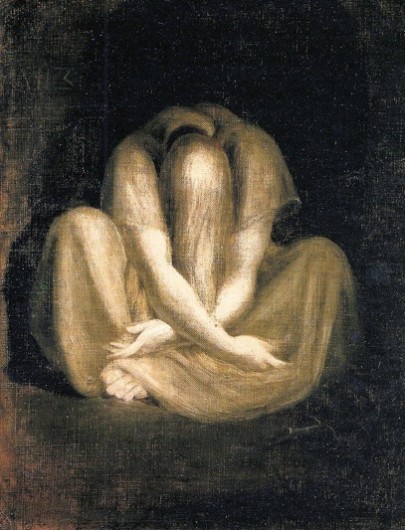J’ai choisi le tableau le Silence, de Johann Heinrich Füssli (circa 1799-1801), comme emblème de mon travail publié en 2009 car il représente à merveille l’angoisse et le désespoir, la réflexion silencieuse et la détresse, la posture coupée des autres, le retrait en soi, la fuite à l’intérieur, le repli vers le ventre, l’anhédonie et l’aboulie, la frénésie du discours intérieur qui se fait pâle vue de l’extérieur, ou la chute inévitable, implicite et extrêmement intimiste d’un sujet maniaco-dépressif.