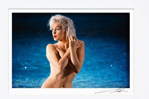 Lawrence Schiller - Taschen and  Steven Kasher GallerySobre os graves problemas que essa personagem podia criar na vida pessoal, há por exemplo a reação brutal e imediata de DiMaggio durante a lua de mel deles no Japão. Sem agüentar mais a dependência afetiva assim como o fascínio cego de Marilyn pelo tipo de olhar público posto sobre essa Outra ela, estrela do cinema, ele virou ciumento, agressivo, violento mesmo. A famosa cena da sáia que voa em cima das  suas coxas carnudas à saída do cinema, emblema do filme The Seven Year Itch (Wilder, 1955), também é a imagem pela qual se precipita a queda do casamento com DiMaggio. Muito depois, na época da rodagem dos Desajustados (Huston, 1961), aos 34 anos, Marilyn parecia apenas «uma sombra na porta da morte» (Meyer-Stabley, p. 206), provávelmente porque neste filme Arthur Miller se inspira do divórcio deles dois como  também da relação patológica de Marilyn ao amor. Assim, até mesmo no cinema se abre uma brecha pela qual passa a realidade alarmante da vida de Marilyn. Nestas condições, a arte dramática que ela tanto tinha esperado adquirir e praticar, é incapaz de trazer-lhe a estabilização psíquica que ela precisava. É mesmo todo o oposto que acontece. As rodagens se tornam um pesadelo vivido numa realidade na qual Marilyn não deixa de se autodestruir e na qual ao mesmo tempo o casal atinge o declínio anunciado. Um pouco depois, no filme Something’s got to give (Cukor, 1962, 2001), ela parece representar um pouco a personagem que ela é na vida real, porque o filme trata de uma história onde um homem casa de novo acreditando que a primeira esposa morreu acidentalmente. Esta mulher, representada por Marilyn, tendo porém sobrevivido ao acidente, volta alguns anos depois, em segredo, à casa “dela” e tenta recuperar o lugar que “lhe” pertencia. O marido já casou com outra mulher e a esqueceu, nem sequer as crianças a reconhecem. Ela não existe mais ou é um fantasma. Ela se sente então muito melhor sozinha na piscina iluminada do que na vida cotidiana, na sombra, onde ela se vê mais perto da morte do que da vida.